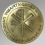 Σφραγίδα "Θεολογική Σχολή Καποδιστριακού Πανεπιστημίου" με έμβλημα το χριστόγραμμα, σύμβολο πίστης των πρώτων χριστιανικών κοινοτήτων.