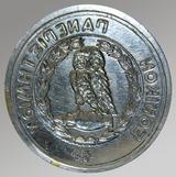 Στρογγυλή σφραγίδα "Εθνικόν Πανεπιστήμιον" με το έμβλημα του Πανεπιστημίου, την κουκουβάγια. Κράμμα λευκού μετάλλου.
