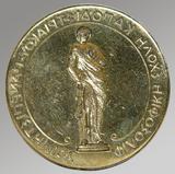 Στρογγυλή σφραγίδα "Φιλοσοφική Σχολή Καποδιστριακού Πανεπιστημίου" με γυναικεία μορφή. Κράμμα χαλκού.