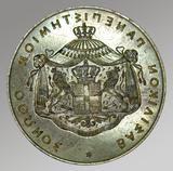 Σφραγίδα "Καποδιστριακόν Πανεπιστήμιον" με την κεφαλή της Αθηνάς. Κράμμα λευκού μετάλλου