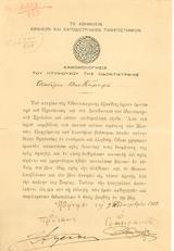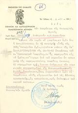 Δακτυλόγραφο έγγραφο του Υπουργείου Γεωργίας. Δακτυλόγραφο έγγραφο του Υπουργείου Γεωργίας. Παραχώρηση εκτάσεως 165.000 τετραγωνικών μέτρων της περιοχής Κουπονιών Αθηνών προς το Εθνικόν και Καποδιστριακόν Πανεπιστήμιον Αθηνών για την ίδρυση Πανεπιστημιούπολης.