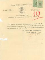 Δακτυλόγραφο έγγραφο του Πρύτανη Ν. Α. Χωραφά προς τον Κοσμήτορα Χ. Διάπουλη. Δακτυλόγραφο έγγραφο του Πρύτανη Ν. Α. Χωραφά προς τον Κοσμήτορα Χ. Διάπουλη. Αφορά ευχαριστήριο για τις προσπάθειες του Χ. Διάπουλη που είχαν ως αποτέλεσμα την παραχώρηση εκτάσεων πέντε στρεμμάτων από το Υπουργείο Γεωργίας για την ανέγερση της Φυσικομαθηματικής Σχολής.
