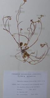 Αποξηραμένο φυτό: FLORA GRAECA Malcolmia flexuosa (Sibth. et Sm.) Sibth. et Sm. Το φυτό με την ονομασία"Herbarium Universitatis Atheniensis FLORA GRAECA Malcolmia flexuosa (Sibth. et Sm.) Sibth. et Sm." ανήκει στην συλλογή αποξηραμένων φυτών του μουσείου. Το φυτό συλλέχθηκε από τον Αρτ. Γιαννίτσαρο στις 14 Απριλίου 1967, από τα Κύθηρα, κοντά στο ξωκκλήσι του Σωτήρα Πενταρμενά (Β.Δ.), σε θαμνώδεις τόπους και σε υψόμετρο 200 μ.