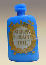 Φαρμακοδοχείο Φαρμακοδοχείο. Βάζο από γαλάζια οπαλίνα. Το βάζο φέρει ζωγραφισμένη περίτεχνη επιγραφή "Scirop: di Diacodio".